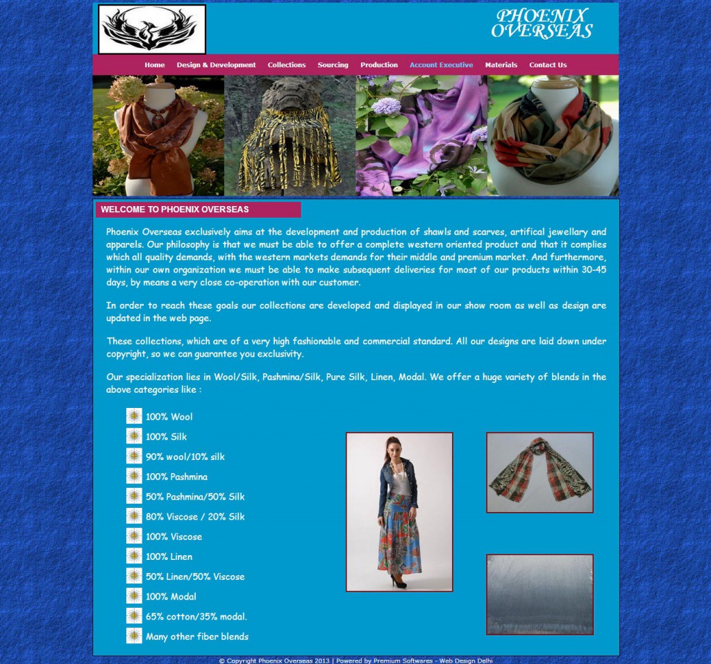 Phoenix Overseas exclusively aims at the development and production of shawls and scarves, artificial jewellery and apparels. Our philosophy is that we must be able to offer a complete western oriented product and that it complies which all quality demands, with the western markets demands for their middle and premium market. And furthermore, within our own organization we must be able to make subsequent deliveries for most of our products within 30-45 days, by means a very close co-operation with our customer.